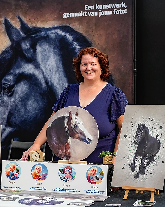 Ik ben Femke Puijman, en met mijn bedrijf Pets & Pictures maak ik handgemaakte portretten van huisdieren. Elk kunstwerk wordt gemaakt op basis van een door jou ingestuurde foto, zodat jouw hond, kat of paard precies zo wordt vastgelegd als jij hem kent.